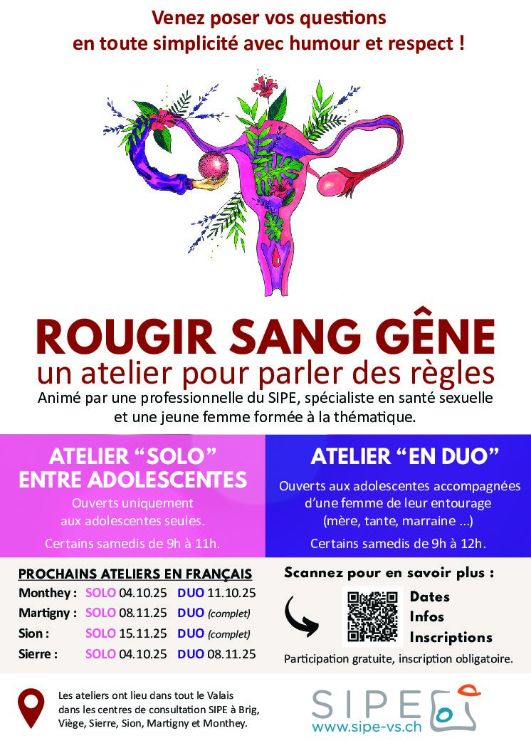 Organisés par le SIPE, ces ateliers sont conçus spécifiquement pour les jeunes filles dès 10 ans (7H-8H) et sont animés par des professionnelles en santé sexuelle et des jeunes femmes formées à la thématique.