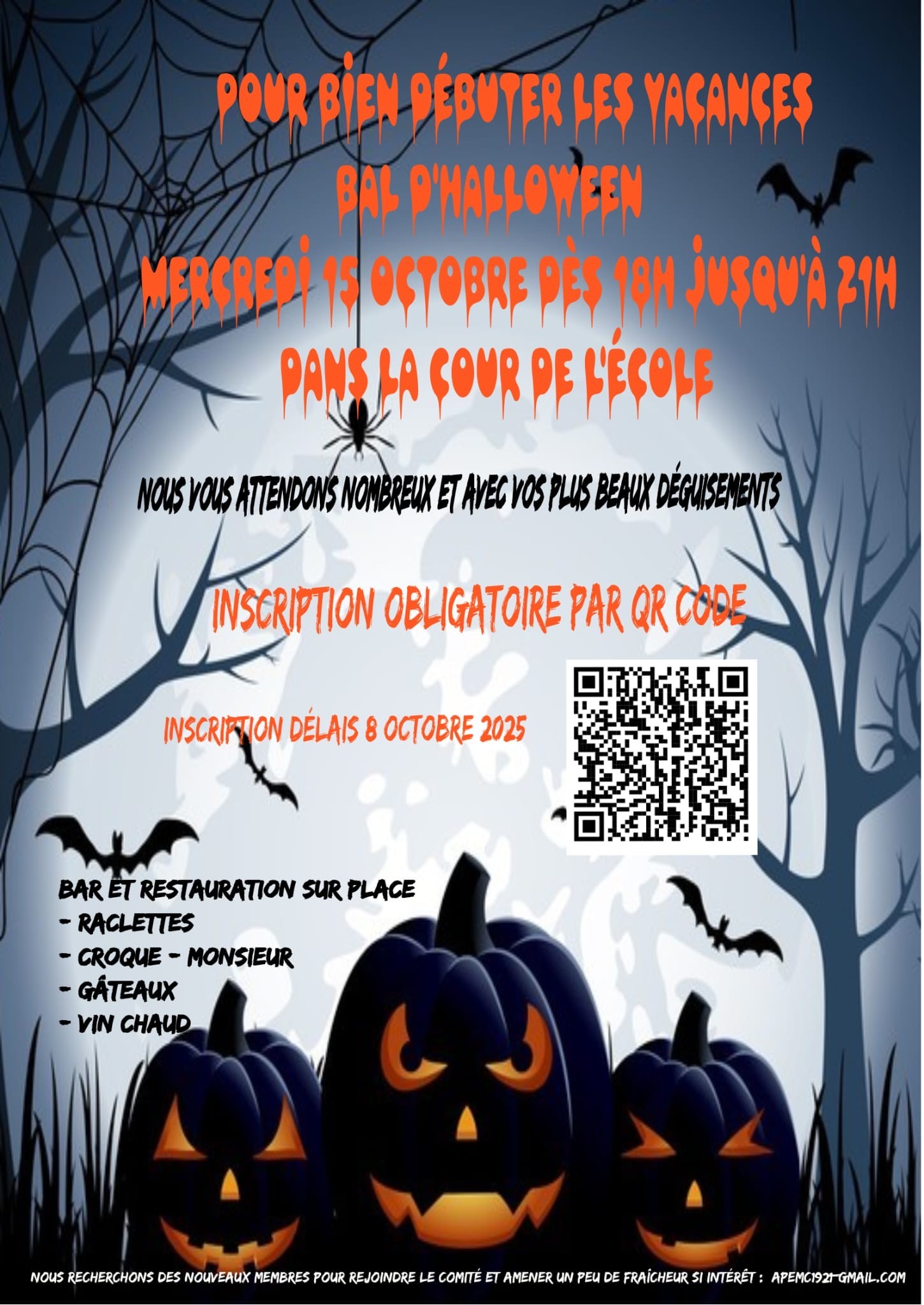 L’APEMC organise un bal d’Halloween le mercredi 15 octobre 2025, dès 18 heures et jusqu’à 21 heures, dans la cour d’école de Martigny-Croix. Inscription obligatoire.