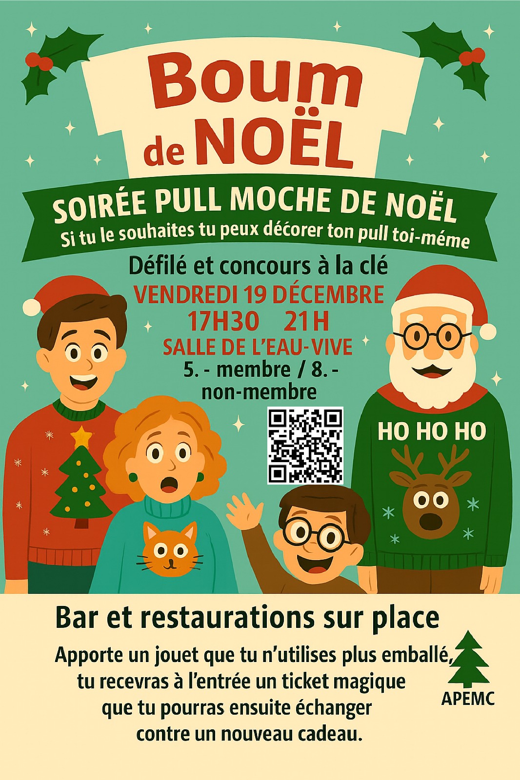L’APEMC organise, en collaboration avec Annelise Nicolet, une boum de Noël le vendredi 19 décembre 2025 à Martigny-Croix.