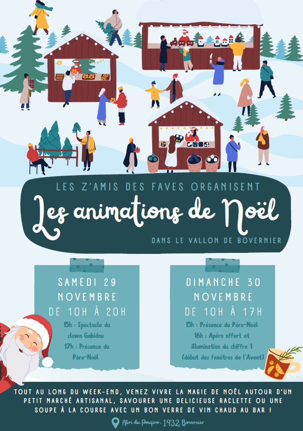 Les Z’Amis des Faves organisent des animations de Noël les samedi 29 et dimanche 30 novembre 2025.